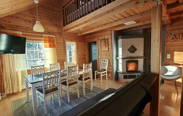 Kristallirannan kaksikerroksiset hirsihuvilat soveltuvat esimerkiksi perheelle tai kaveriporukalle. Niissä voi majoittua 8 henkilöä ympäri vuoden. Kesällä ilmalämpöpumppu tuo mukavan viilennyksen ja talvella voit halutessasi lämmitellä takan äärellä sähkölämmityksen lisäksi.